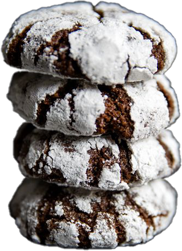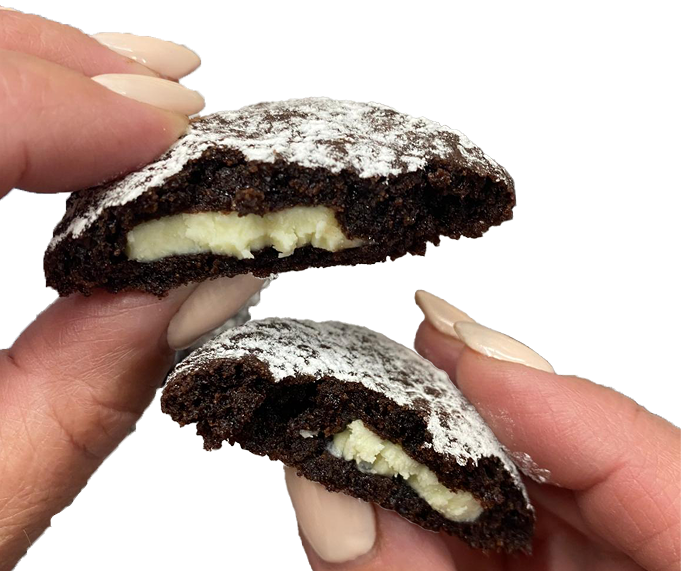 עוגיית שוקולד כהה ועשירה, מרקם פאדג’י רך מבפנים, סדקים דרמטיים מבחוץ,ותוספת אבקת סוכר שמדגישה את ה״רעידה״